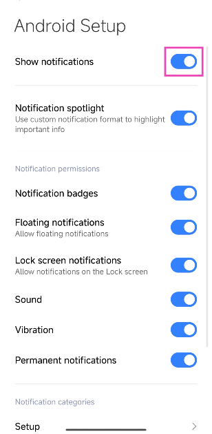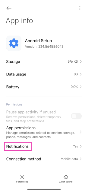 Schakel meldingen uit voor de Android Setup-app