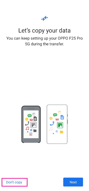 Stap 3:In dePagina Gegevens overdragen, tik opKopieer niet.