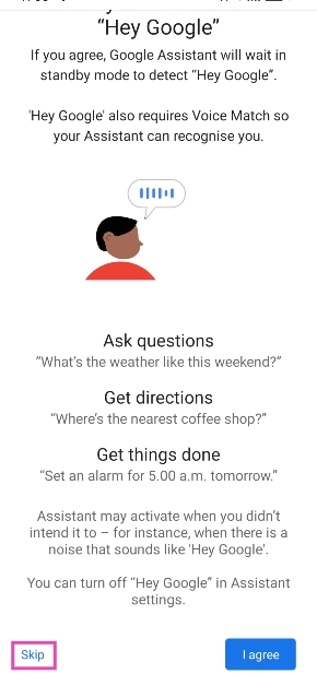 Stap 6:Blader op de instellingenpagina van de Google Assistent naar beneden en druk opOverslaan.