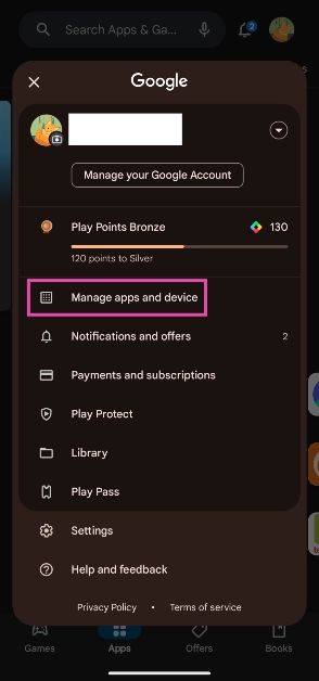Stap 3:Tik opBeheer apps en apparaat.