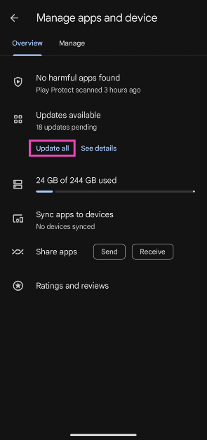 De Android Setup-melding verschijnt ook wanneer er updates in behandeling zijn voor de apps op uw telefoon. Om dit op te lossen, updatet u eenvoudig alle apps via de Google Play Store.