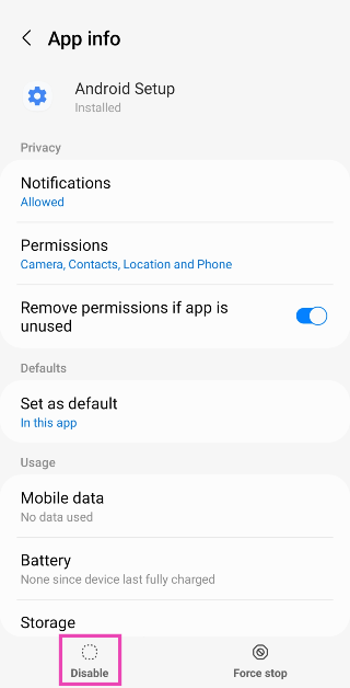 Schakel de Android Setup-app uit