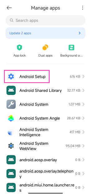 Stap 3:SelecteerAndroid-installatieuit de lijst met apps.