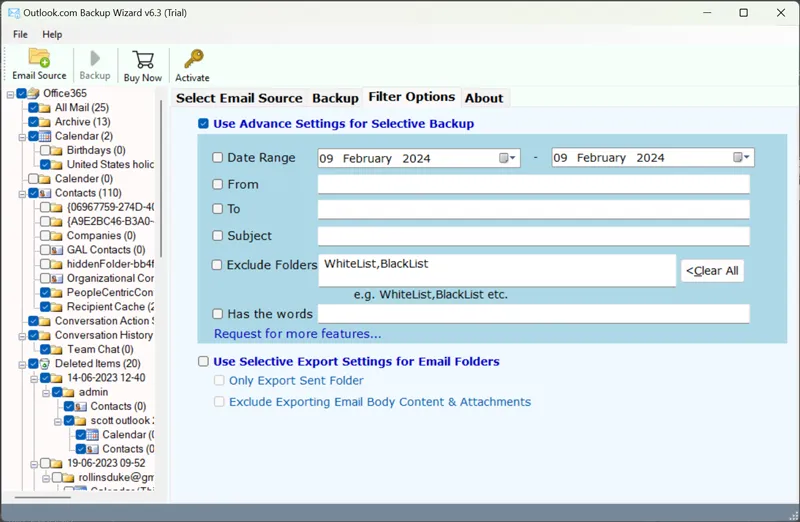 - Aktiver avanserte filtreFor å konvertere Hotmail til Outlook.com selektivt.