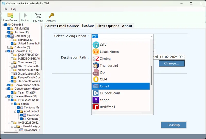 - Fyll legitimasjon og klikkSikkerhetskopiå migrere hotmail til outlook.com.