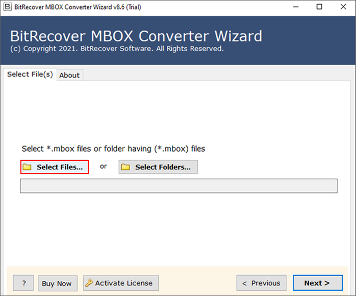 - Sett inn MBOX-filen medVelg Filboks >Neste.