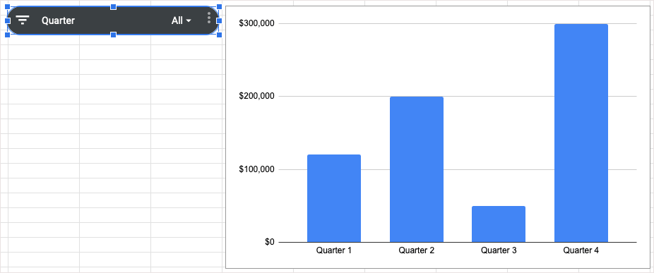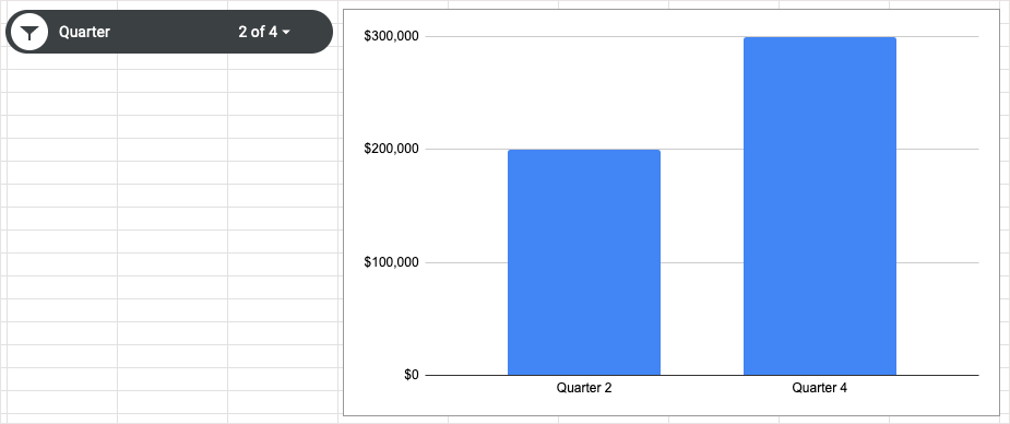Når du har skjæremaskinen, velgFilterknappen til venstre eller rullegardinmenyenpiltil høyre. Deretter velger du dataene du vil se i diagrammet som setter avmerker ved siden av disse elementene.