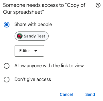 Hvis du ikke allerede har delt dokumentet med godkjennerne, blir du bedt om å gjøre det og tildele tillatelsene.