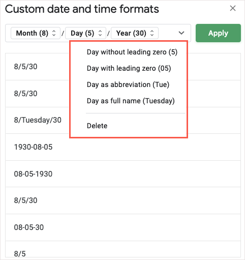 Mens Google Sheets tilbyr mange forskjellige måter å formatere datoer og klokkeslett på, kanskje du vil ha noe spesielt. Du kan lage ditt eget dato- og klokkeslettformat med strukturen, fargene og stilen du ønsker.