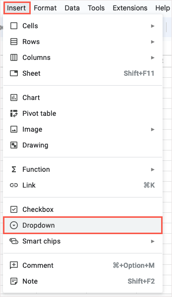 - Sett inn en rullegardinliste ved å gjøre ett av følgende: