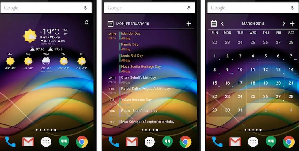 Måned er en samling av kalenderwidgets med over 90 forskjellige temaer som kan integreres med hvilken som helst oppsett, bakgrunnsbilde og startskjermoppsett. Denne nyttige widgeten viser kalenderhendelser, vennenes bursdager og til og med gjøremålslister. Den støtter også månekalenderen.