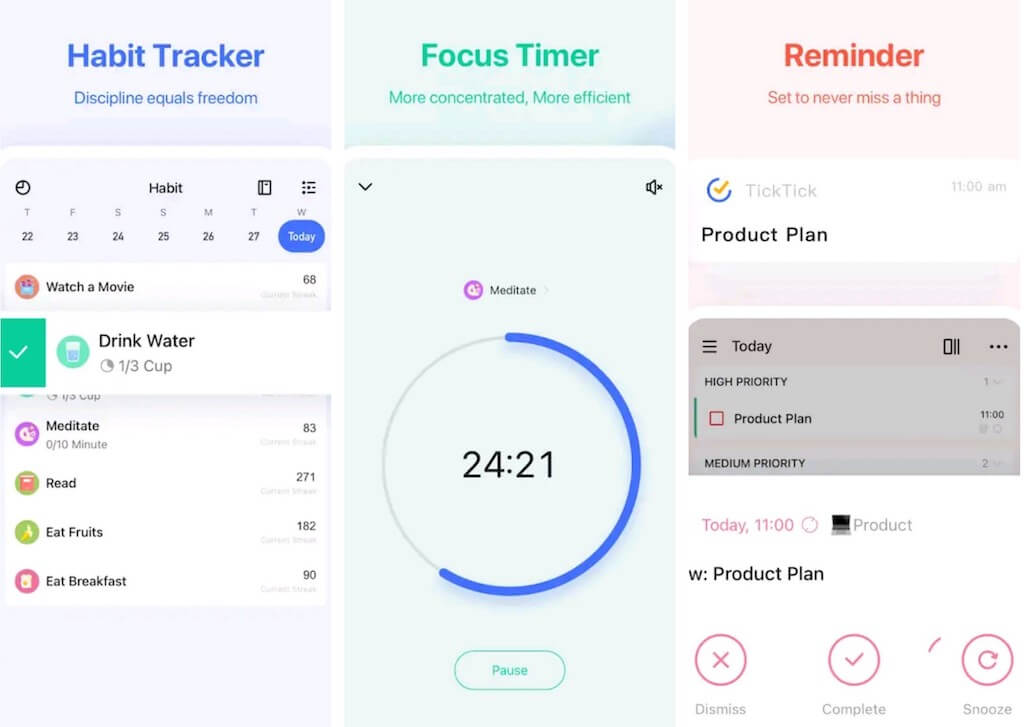 Gratisversjonen av TickTick lar deg legge til påminnelser for oppgavene dine (opptil 2 påminnelser per oppgave), slik at du ikke trenger å bekymre deg for å glemme å gjøre noe. For de som ønsker å bekjempe utsettelsesvanene sine, vil en nyttig Pomodoro-timer-widget hjelpe deg med å bli mer produktiv når du jobber.