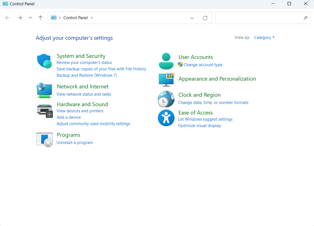 - Skriv inn i søkefeltet i WindowsKontrollpanel.