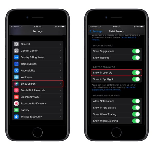 5. Siri Look Up er kanskje ikke aktivert