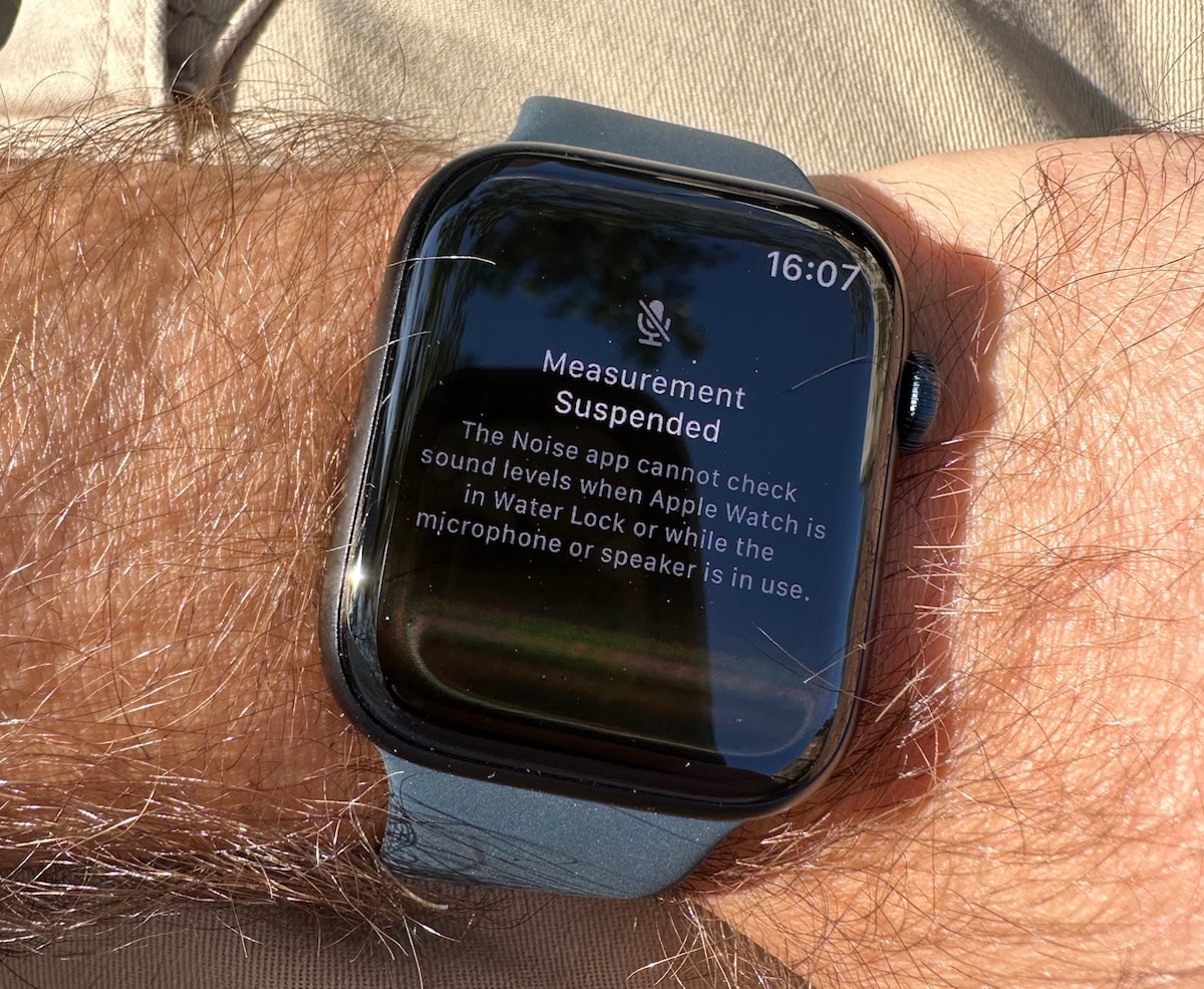 Jeg kjøpte nylig serie 8. Imidlertid dukker både støyappen (og også Siri og diktering) opp med en "Måling suspendert" (se vedlagt) melding. Det er som om mikrofonen blir brukt av en annen app, vi har lukket alle appene på klokkene, startet dem på nytt, oppdatert dem til det nyeste Watch OS (iPhone 14s pro også begge oppdatert til 16.0.1), men uten suksess. Hvis dette er et programvareproblem, vennligst fiks det snart. Ellers må jeg dessverre returnere produktet. På forhånd takk. 18. september 2022
