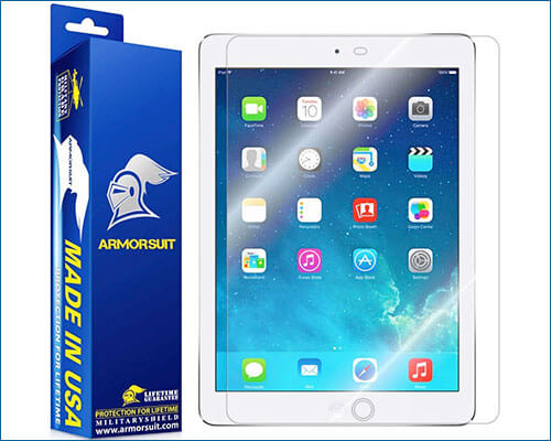 ArmorSuit er kanskje den eneste skjermbeskyttelsen av militærkvalitet for iPad Air fra denne listen. Det er imidlertid ikke mye forskjell i måten disse skjermbeskyttelsene fungerer på. Den ene store forskjellen er at skjermbeskyttelsen visstnok også tåler støt fra skarpe gjenstander, i tillegg til å beskytte iPad Air mot riper og støv. Varianter inkluderer et personvernskjold som hindrer andre i å kunne se på iPad-skjermen fra en vinkel.