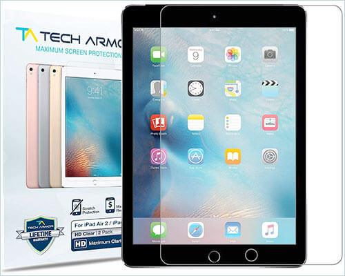 Tech Armors iPad Air-skjermbeskyttelse er en betydelig tynn HD-gjennomsiktig film. Det er den samme japanske PET-skjermen som de fleste skjermbeskyttere er laget av. Skjermbeskytteren påvirker ikke berøringsopplevelsen. Skjermen forhindrer stort sett fingeravtrykk også og kan beskytte iPad Air-skjermen mot riper og støv. Det er ganske bra rustning for skjermen.