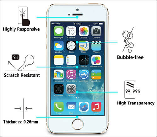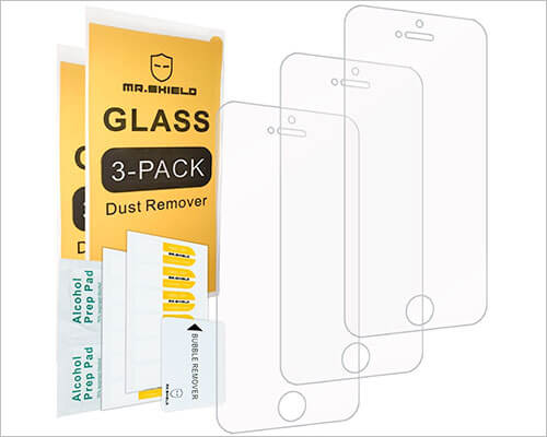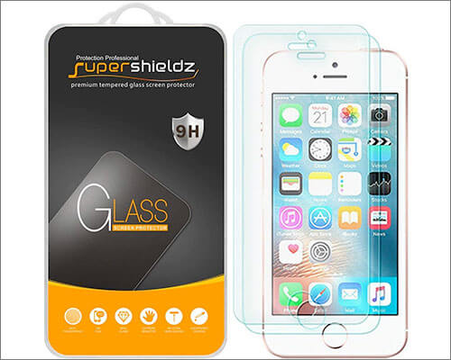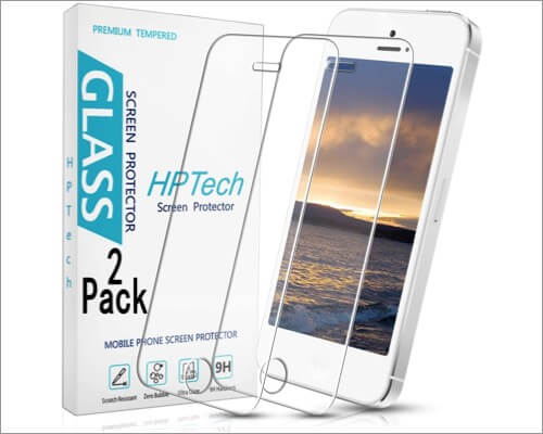 Det er bedre å beskytte skjermen på iPhone SE med klassens beste hardhet. Det er grunnen til at store herdet glassbeskytter er på denne listen. Den har 9H-hardheten, som er like under hardheten til diamant ved 10H. Det vil sørge for at enhetens skjerm forblir intakt fra kraftige fall og vil heller ikke la støv eller skitt feste seg til den.