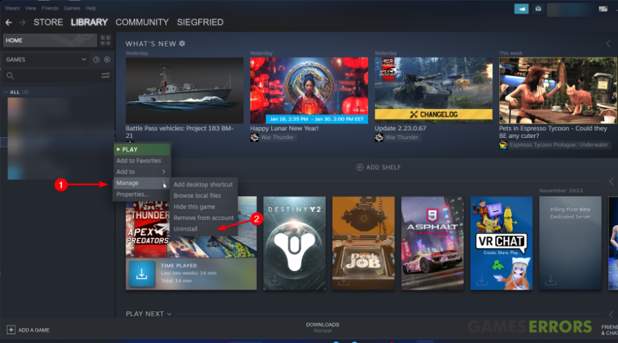 - Gå tilBibliotekog høyreklikk på spillet for å åpneEgenskapervindu.