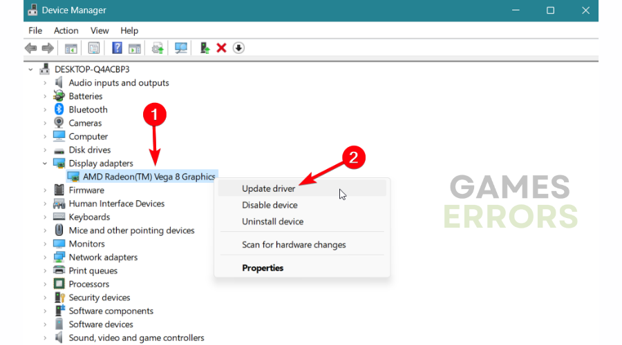 - Høyreklikk på enhetsdriveren og velgOppdater.
