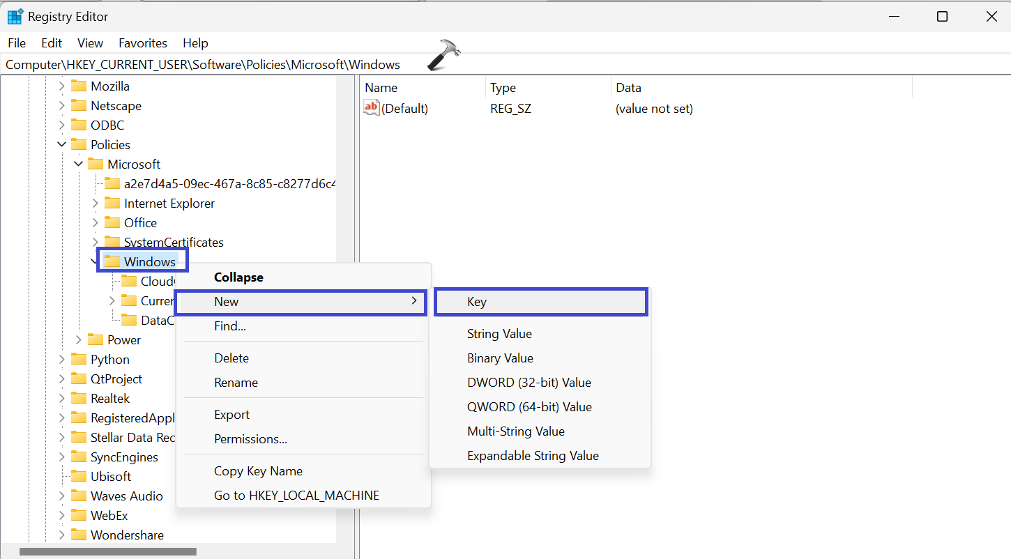 HKEY_CURRENT_USERSoftwarePoliciesMicrosoftWindows
