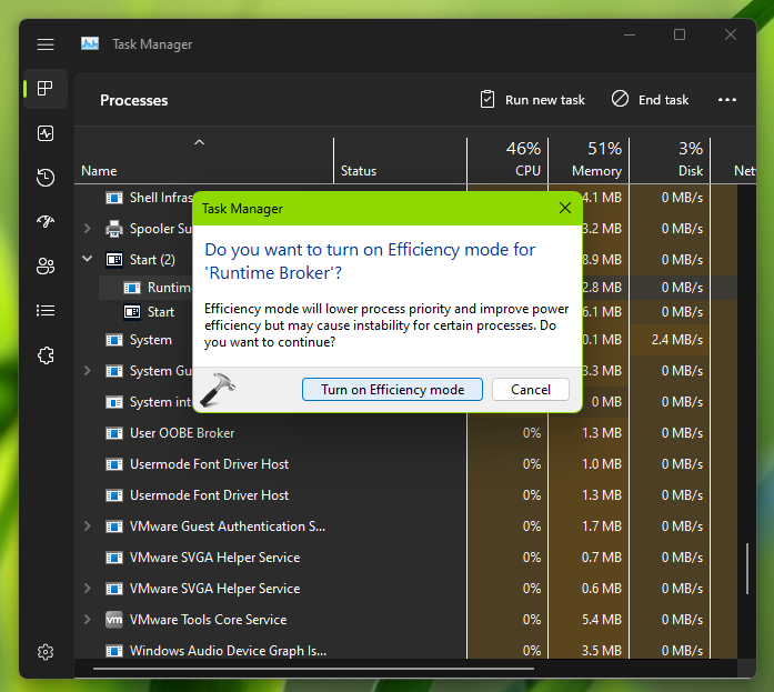 Først av alt må vi forstå hva som er funksjonen for effektivitetsmodus. Funksjonen er spesielt nyttig når du merker at en app bruker høye ressurser og ønsker å begrense forbruket slik at systemet prioriterer andre apper som vil føre til raskere respons i forgrunnen og bedre energieffektivitet. Totalt sett fungerer dette som et tilkoblet system og fører til slutt til å forbedre systemytelsen.