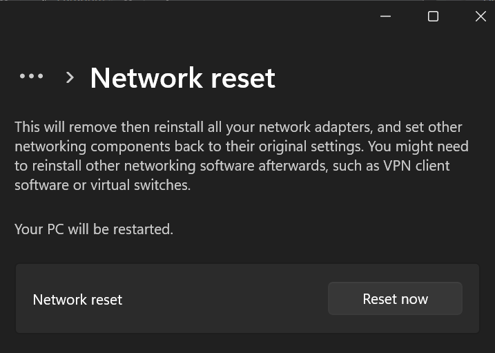 Fix 3 - Utfør en nettverkstilbakestilling for å fikse: Kan ikke slå av flymodus i Windows 11