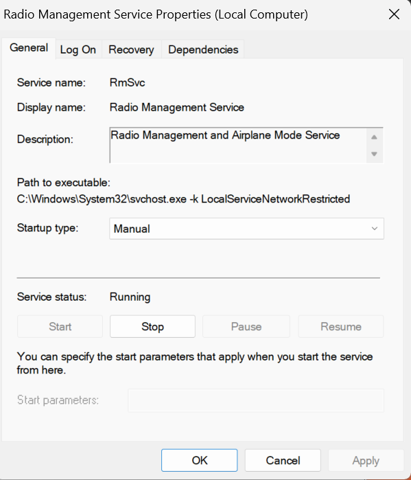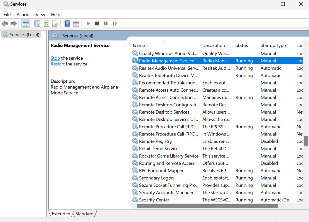 - For det siste trinnet, trykk påRadiostyringstjenesteog velgStart på nytt.