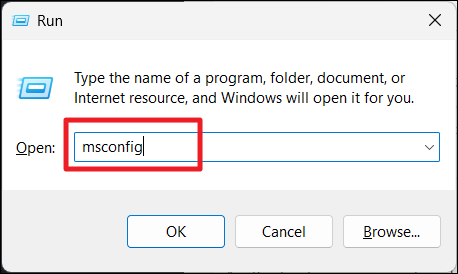 1. Åpne Kjør-dialogboksen, skriv "msconfig"og trykk Enter.