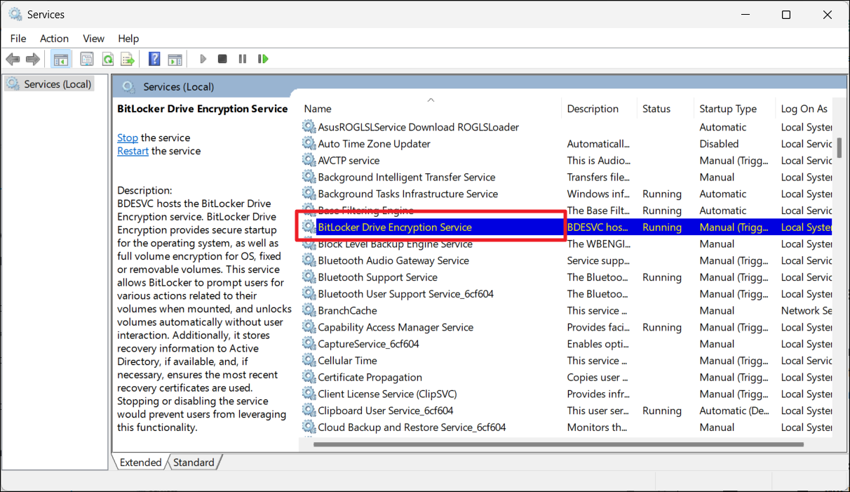 2. Dobbeltklikk på "BitLocker Drive Encryption Service" tjeneste.