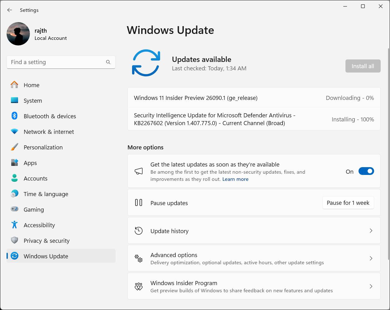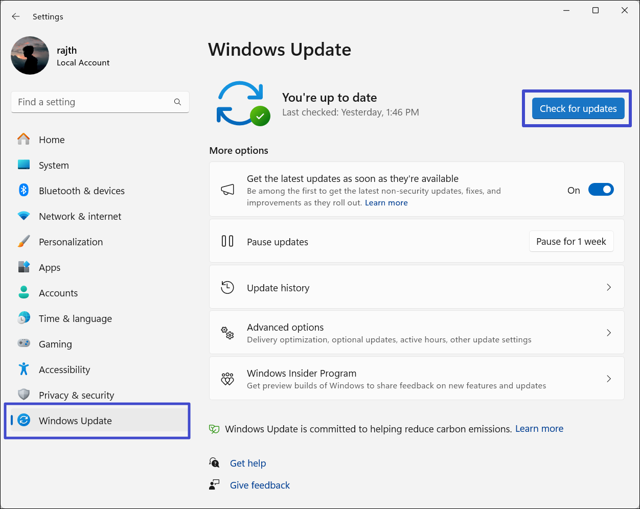 3. Deretter laster du ned og installer eventuelle ventende oppdateringer. Etter oppdateringen starter du PC-en på nytt.