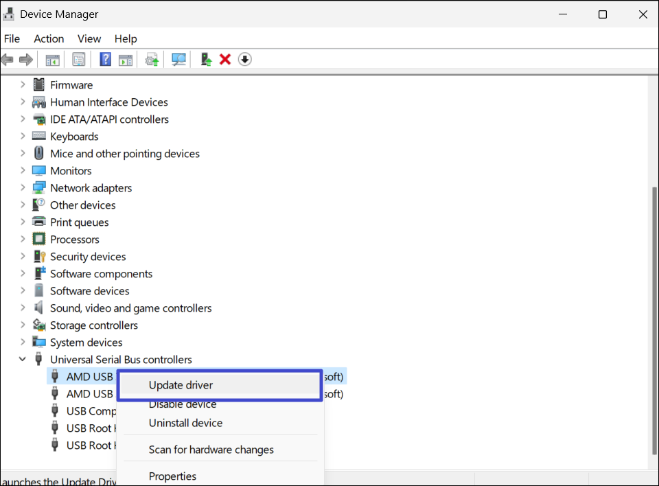 2. Utvid "Universal Serial Bus Controller"-alternativet, høyreklikk driveren du vil oppdatere, og velg "Oppdater driveren“.