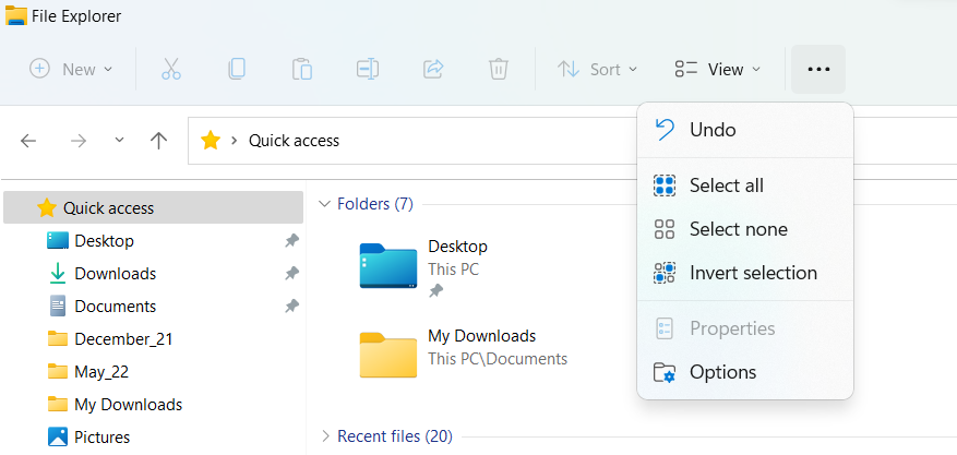 Noen brukere klager over at File Explorer krasjer i Windows 11 hver gang de høyreklikker på dette vinduet for alternativer som klipp ut, kopier, lim inn eller endre navn. En grunnleggende løsning foreløpig er å avstå fra å bruke høyreklikk. I stedet kan du bruke filutforskerens øverste menylinje. Den har allerede de fleste av de ofte brukte funksjonene. Dette er en midlertidig løsning inntil utviklerne finner en permanent løsning på det.