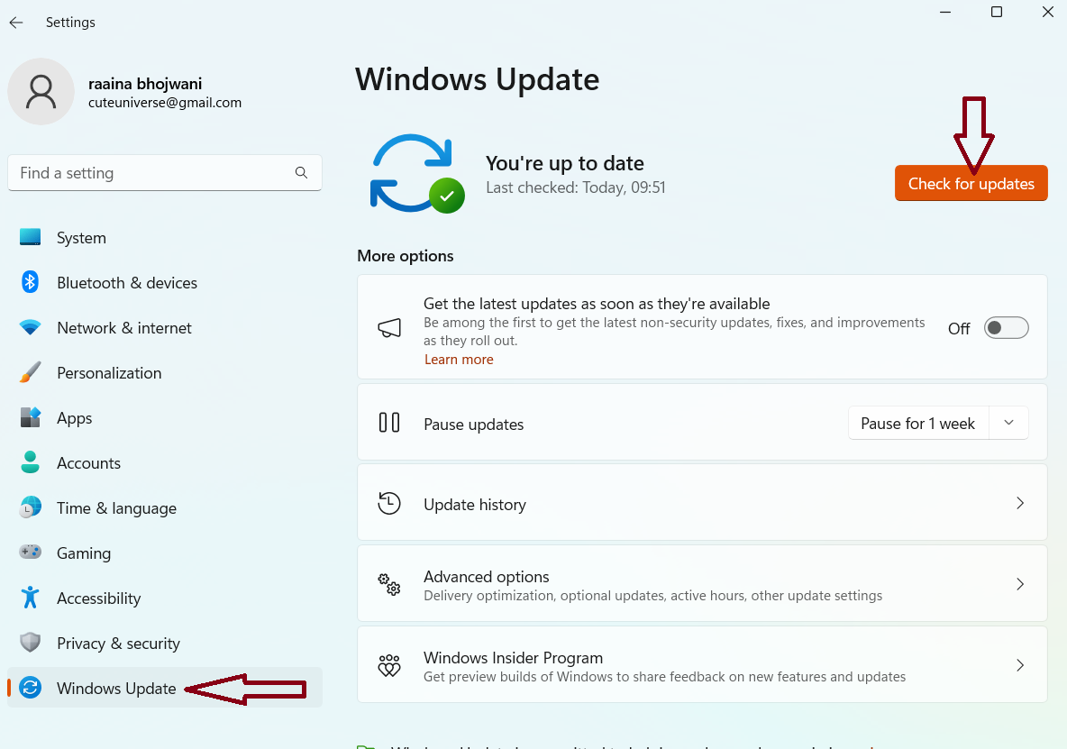 Fix 4: Se etter oppdateringer