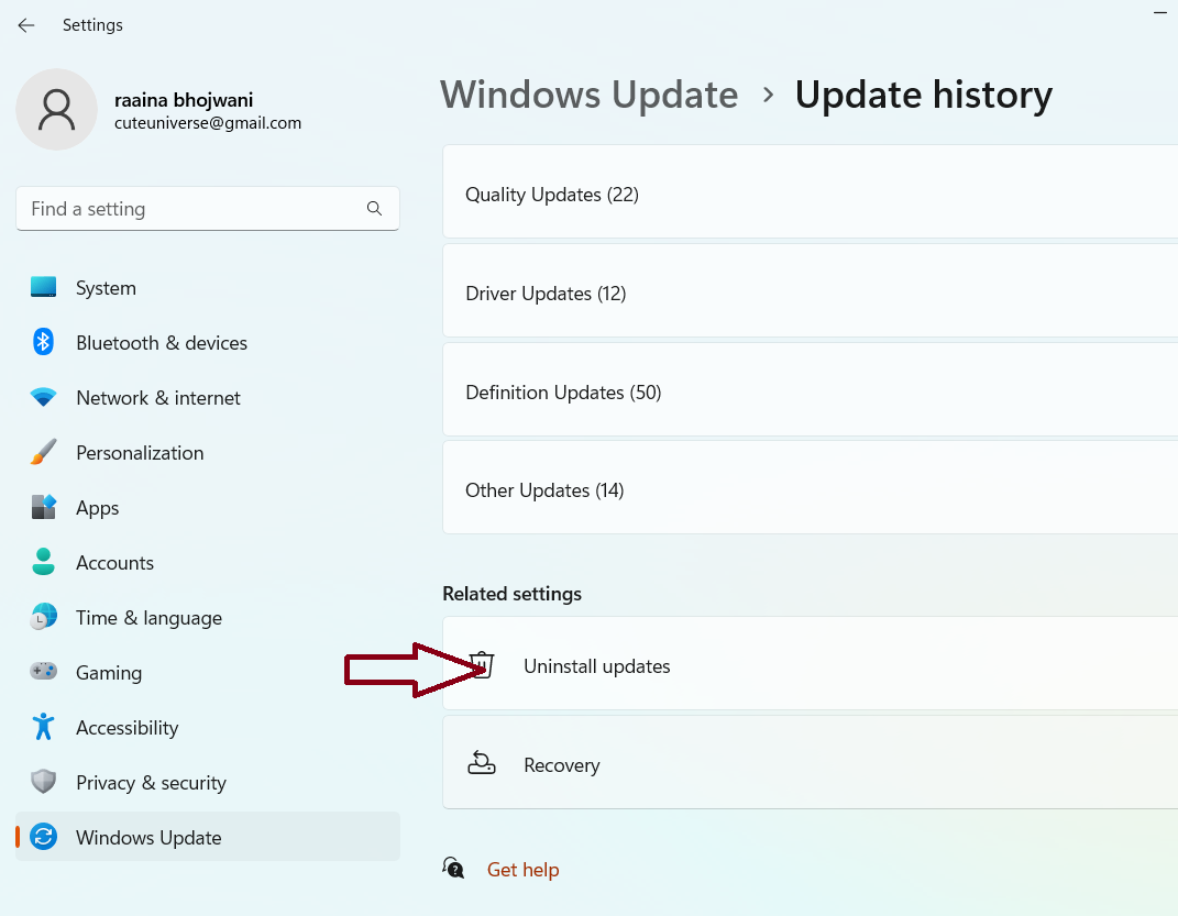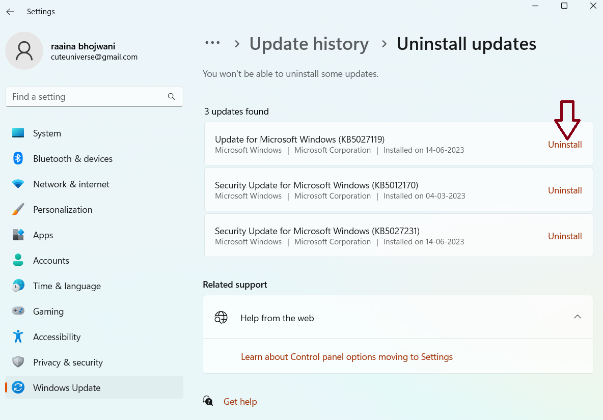 Fix 8: Avinstaller en oppdatering for å fikse at File Explorer ikke fungerer på Windows 11
