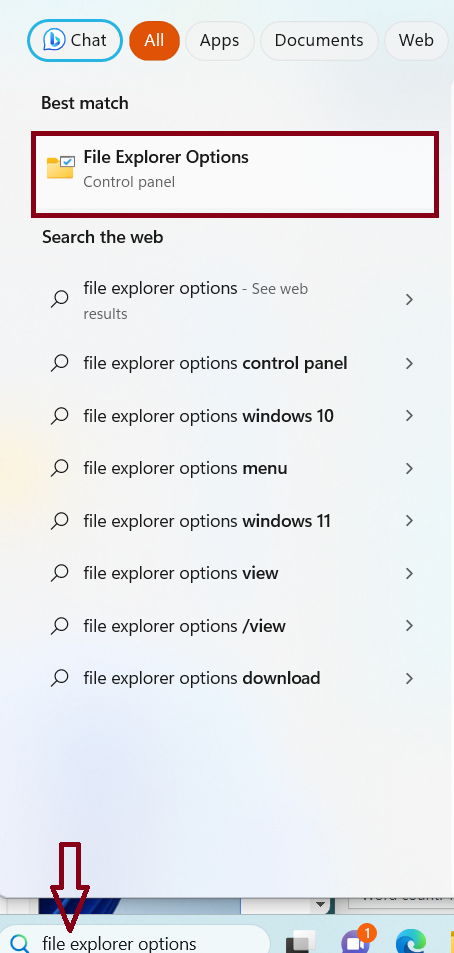 1. Søk i Filutforsker-alternativene i søkefeltet og åpne den.