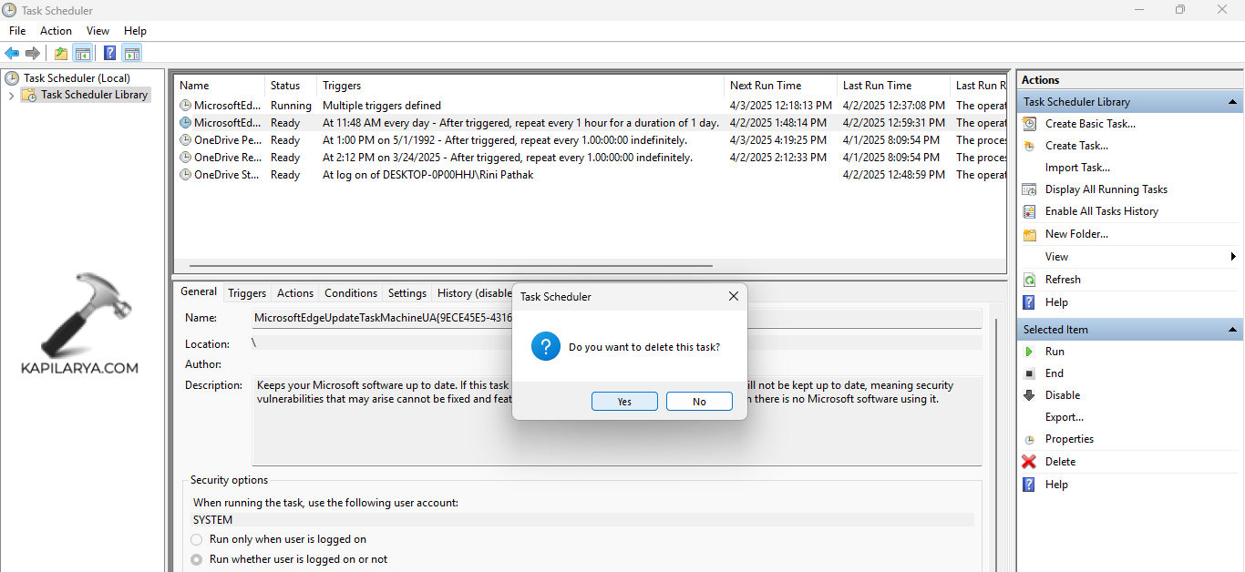 Trinn 7-Til slutt, trykk Ja og lukk oppgaveplanleggeren. Start deretter PC-en på nytt.