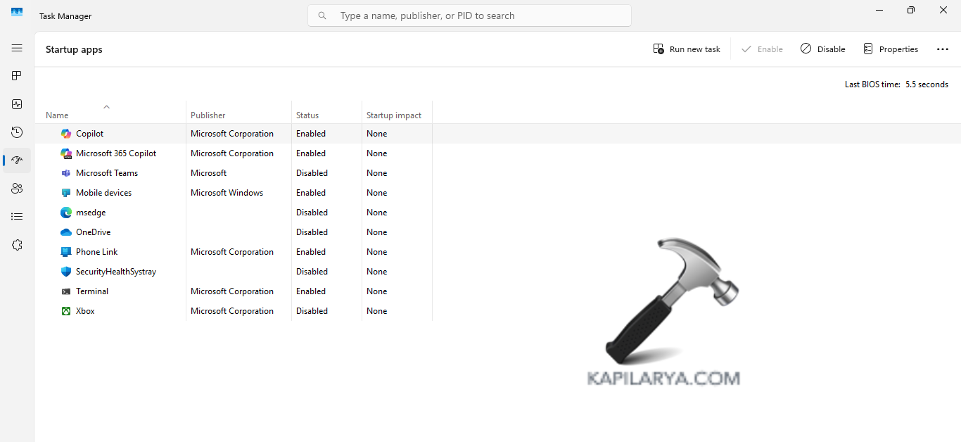 Kontroll av oppstartselementene i Oppgavebehandling og sletting av uvanlige elementer kan også hjelpe til med å løse Ugyldig kommandolinjefeil ved oppstart av Windows 11. Følg derfor trinnene nedenfor for å sjekke elementene.
