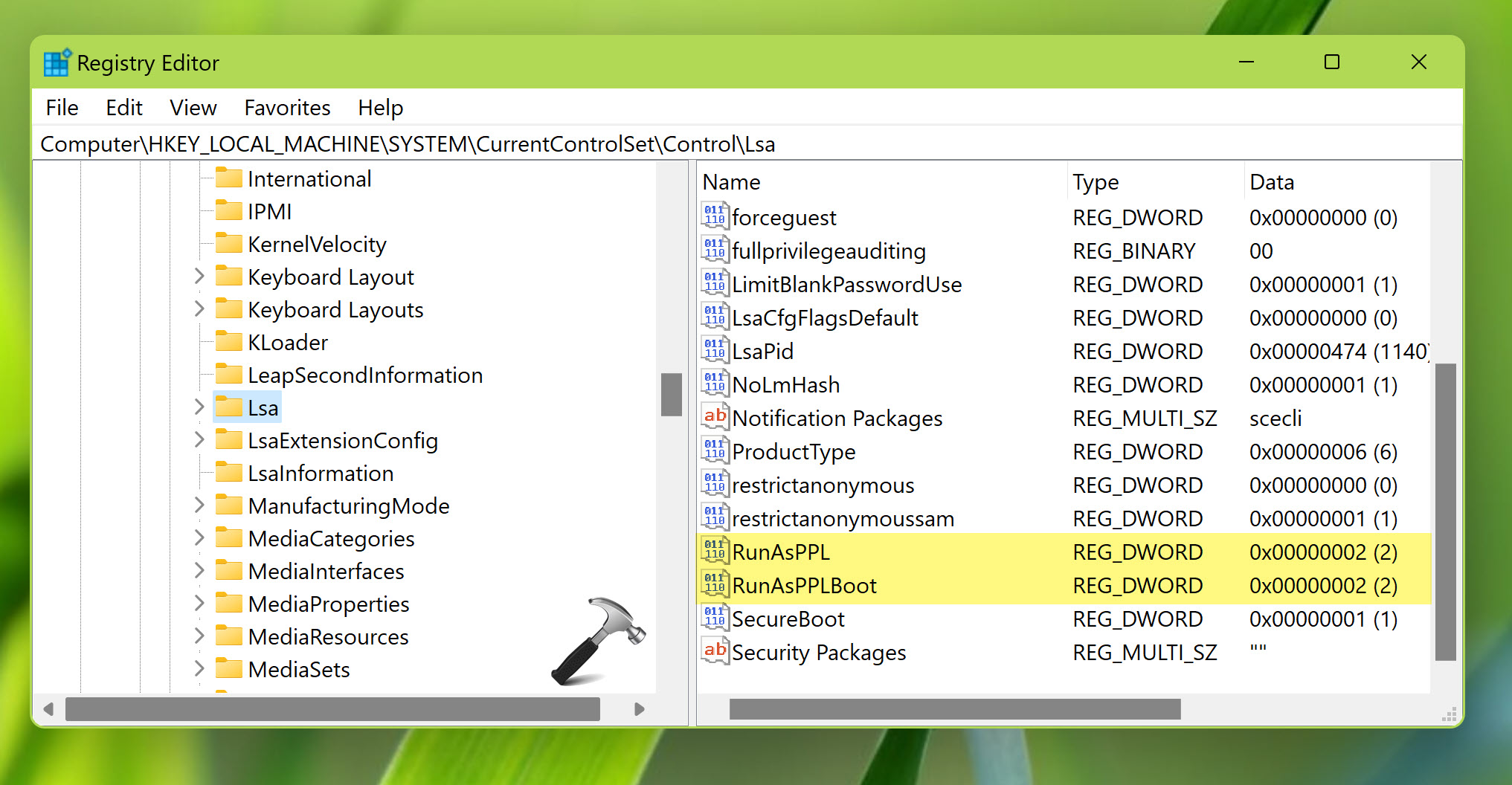 HKEY_LOCAL_MACHINESYSTEMCurrentControlSetControlLsa