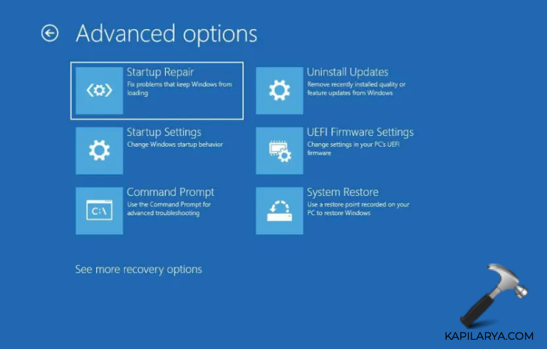 Fix 1: Kjør oppstartsreparasjon av Windows 11