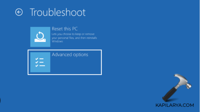 4. Klikk på "Avanserte alternativer" på feilsøkingsskjermen.