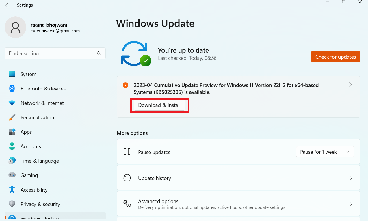 - Klikk påWindows-oppdateringog klikk deretterSe etter oppdateringer.