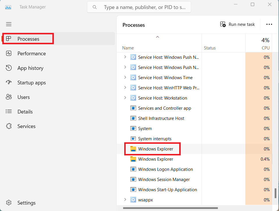 Fix 3: Start Windows Explorer på nytt fra oppgavebehandlingen