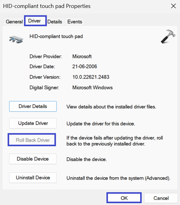 Hvis du har opplevd at Touchpad-innstillingene forsvinner i Windows 11 etter en driveroppdatering, bør du vurdere å rulle tilbake til en tidligere versjon av Touchpad-driveren.