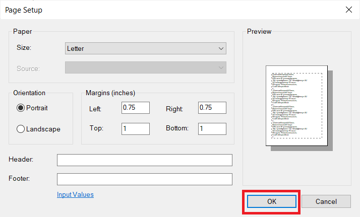 Implementer trinnene nedenfor for å skrive ut notatblokkdokumentet. Husk også å sjekke sideforhåndsvisningen ved hjelp av sideoppsettalternativet som nevnt før.
