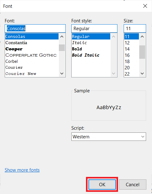 3.PåFontvindu, sett enFont,SkriftstilogStørrelsei henhold til ditt krav. Når du er ferdig, klikker du påOKfor å lagre endringene som er gjort.