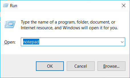 Start Notisblokk med Kjør-dialogboksen