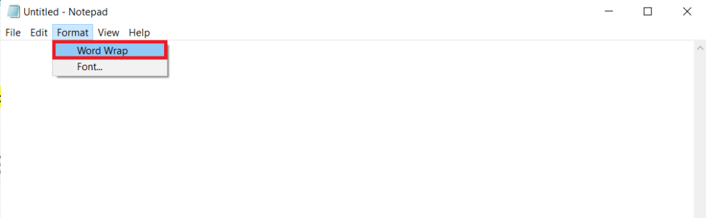 Vær imidlertid oppmerksom på at det ikke er aktivert som standard. Dette betyr at det bare vil være én tekstlinje. Rulleverktøyet, som ligger nederst i vinduet, må brukes til å vise eller få tilgang til tekst som er skjult i notisblokken. Å aktivere ordbryting i notisblokken er en enkel teknikk for å kutte ned på arbeidskraften. Følg instruksjonene for å aktivere Word Wrap.