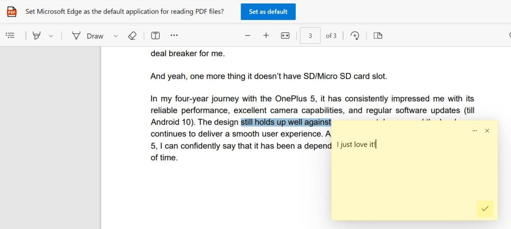 Denne produktivitetsfunksjonen i Microsoft Edge er en perle du ikke vil gå glipp av. Den nyeste versjonen av Microsoft Edge har en av de mest enkle tilnærmingene for å legge til notater i en PDF. Slik kan du gjøre det: