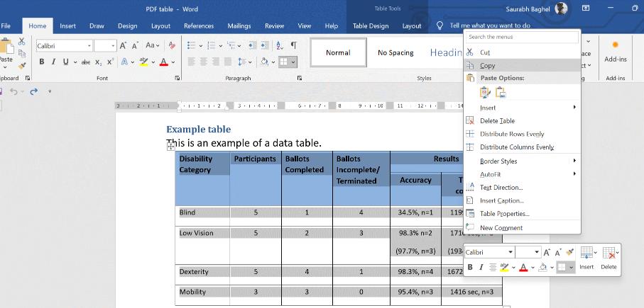 Trinn 5:Velg og kopier tabellen fra dokumentet.